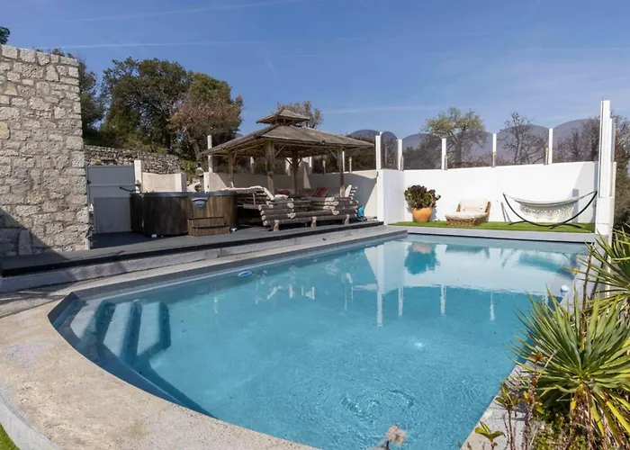 W pełnowymiarowej kuchni Goście mogą bezpłatnie korzystać z kuchenki mikrofalowej, czajnika elektrycznego i lodówki. Restauacja La Pause Café znajduje się tylko 400 m od willi oraz oferuje szeroki wybór dań kuchni francuskiej. Opcje transportu w okolicy obejmują również lotnisko Nicea-Lazurowe Wybrzeże, oddalone o 15 min jazdy samochodem.